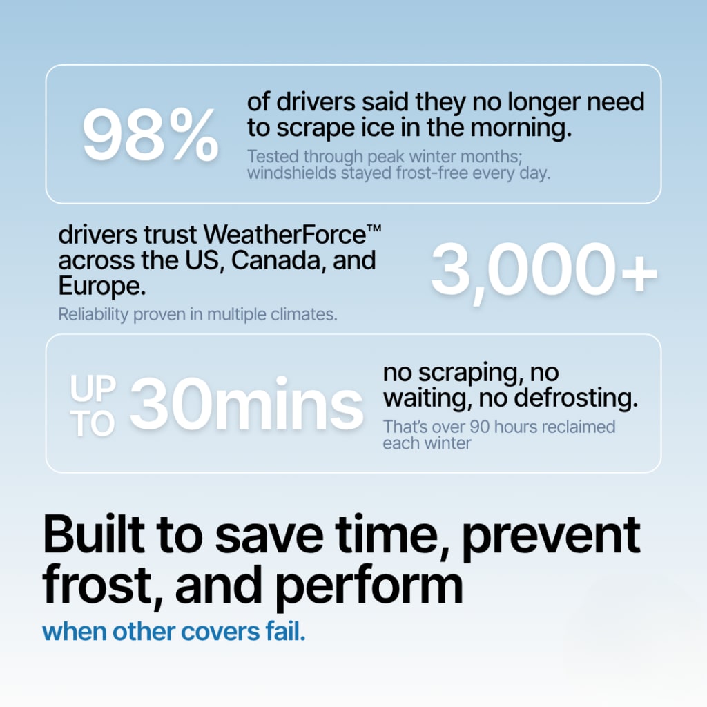 Say goodbye to frozen wipers and early-morning scraping. Just pull it off and go.
